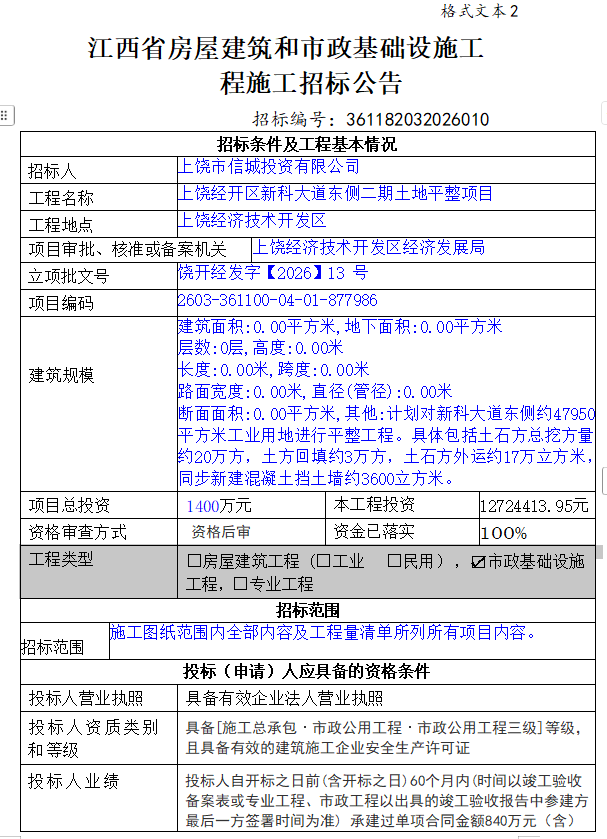 上饶经开区新科大道东侧二期土地平整项目招标公告(3).docx