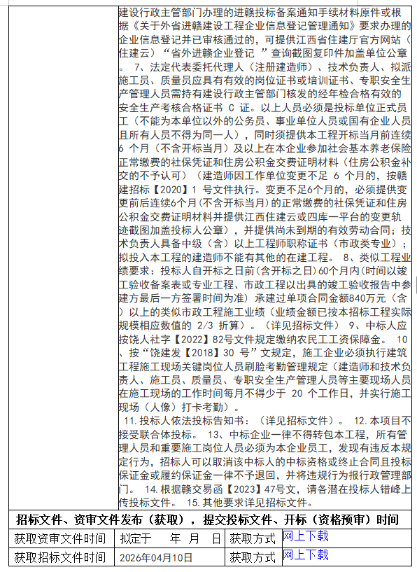 江西省房屋建筑和市政基础设施工程施工招标公告