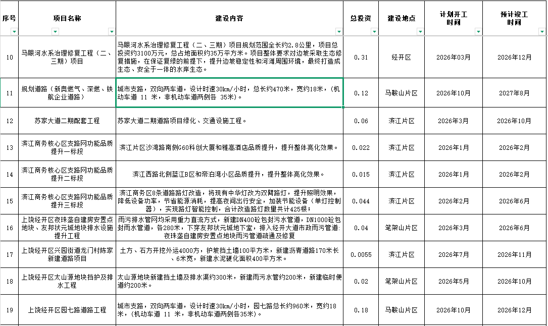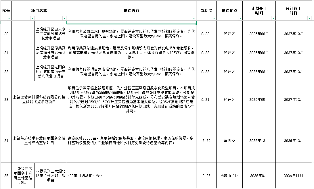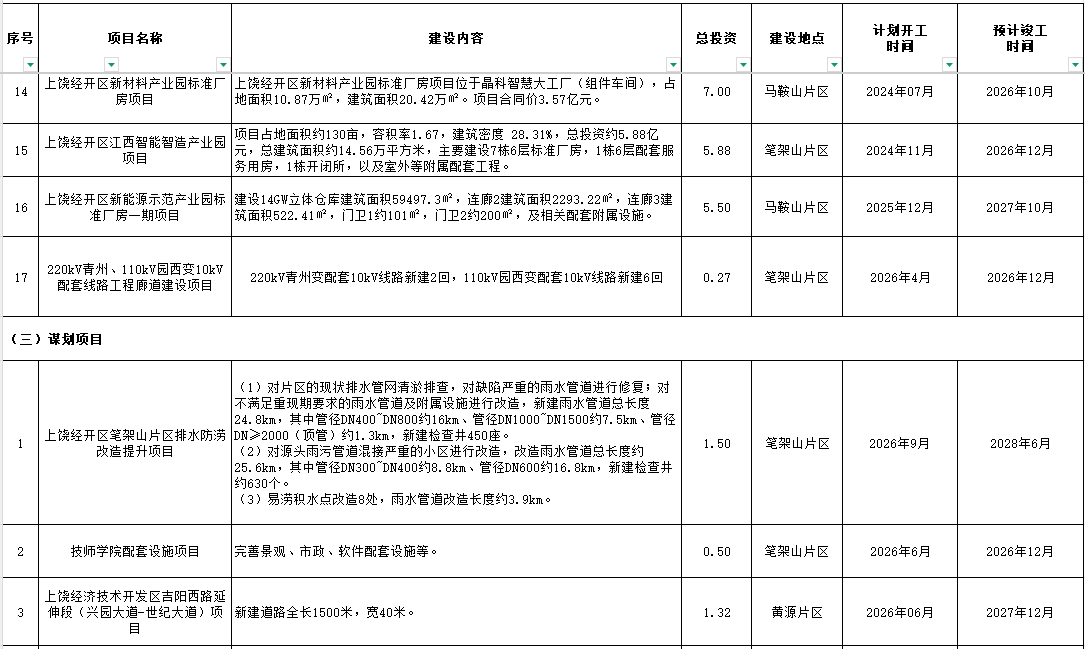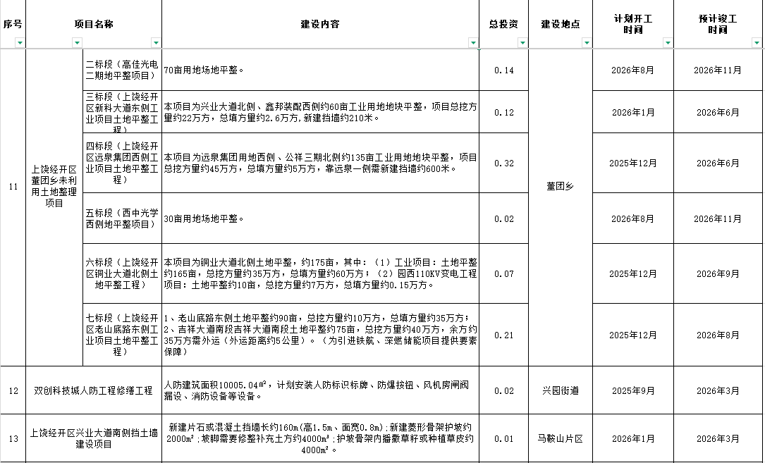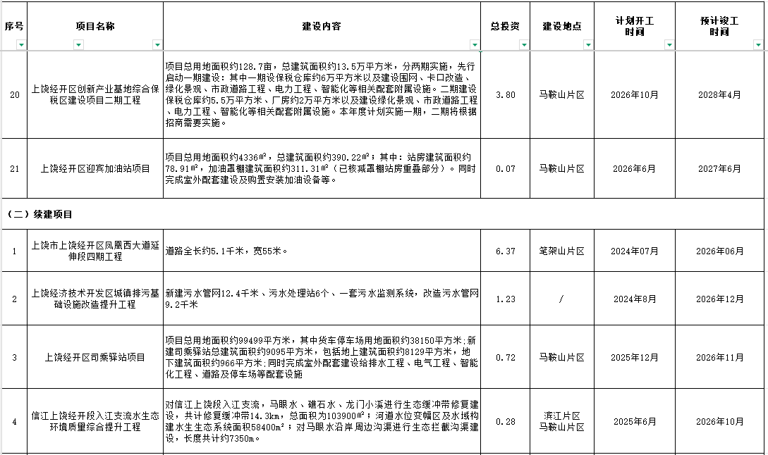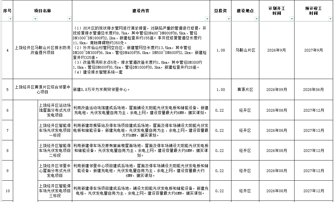 2026年上饶经开政府性项目投资计划表